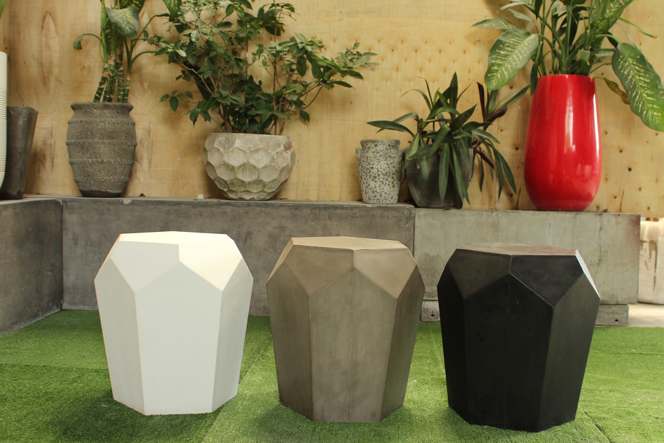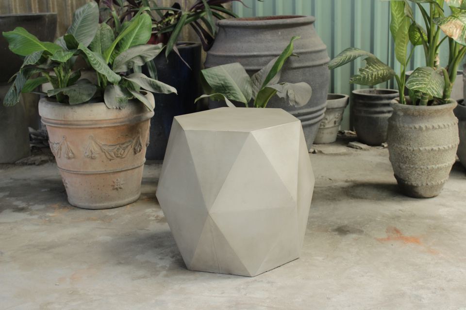 Luxueuse table d'appoint géométrique en béton avec dessus imperméable pour chambre ou salon