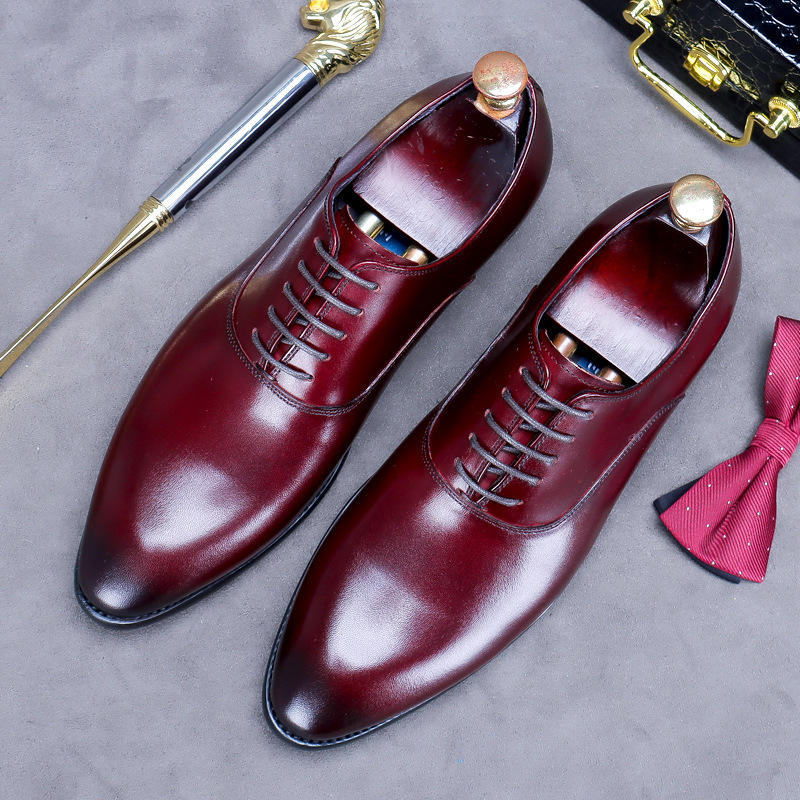 Luxurious Genuine Leather Men's Oxfords British Business Casual Formal Shoes Pointed-Toe Lace-Up Evergreen