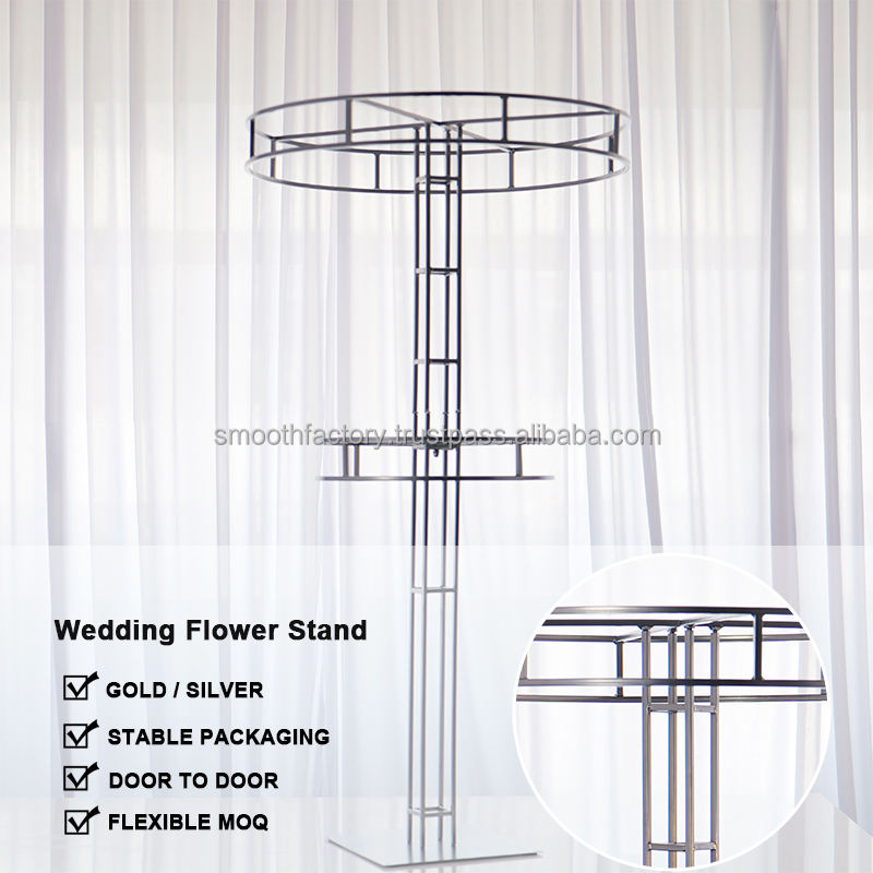 Support à fleurs en métal haut de gamme, double rangée, argenté, 1,5 m, taille personnalisée, pour centres de table de mariage