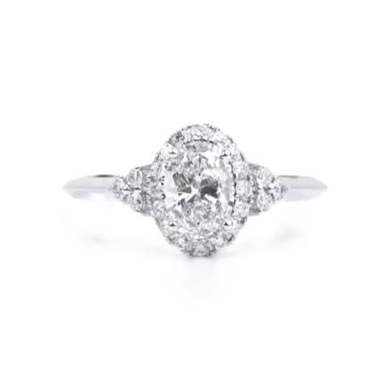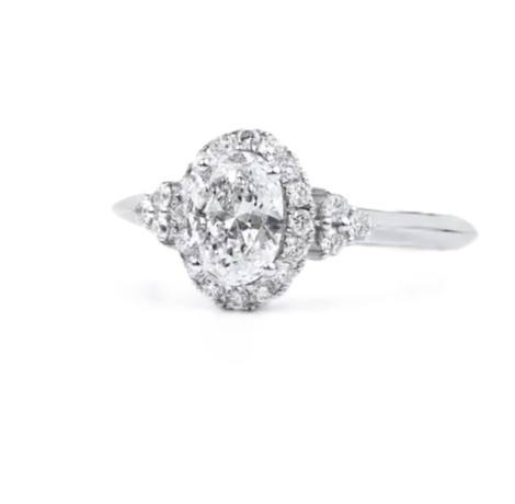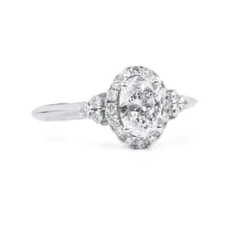 Bague de promesse en argent sterling massif 925 avec pierre centrale en or 10K 14K et pierres latérales ovales, halo de diamants ronds cultivés en laboratoire - Vente en gros