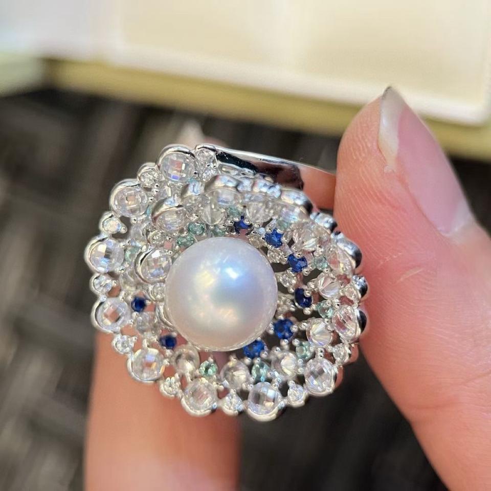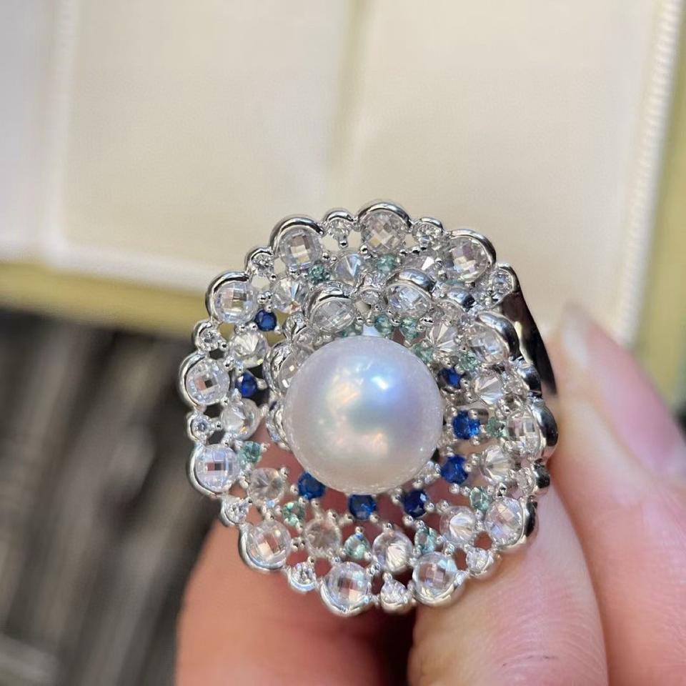 Luxury 10-11 Round Flawless Freshwater Pearl Ring Nuclear-Free Strong Light Precision Pure Silver Luxury Gift Box Fashion Gift