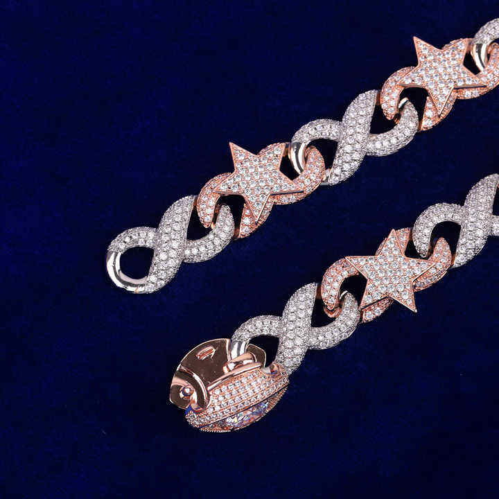 Luxury 14mm Infinity Star Cuban Link Sterling Silver Bracelet Moissanite Iced Hip Hop Jewellery Diamond Bangles