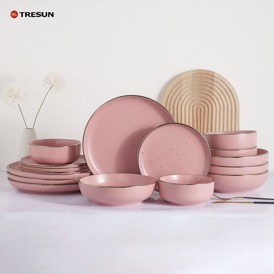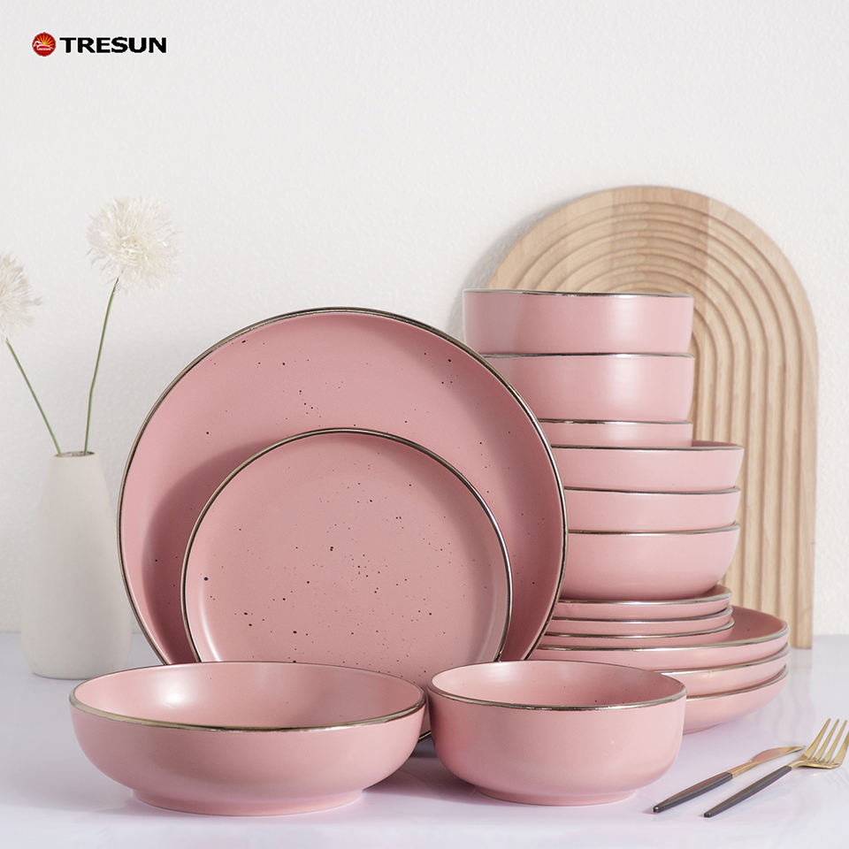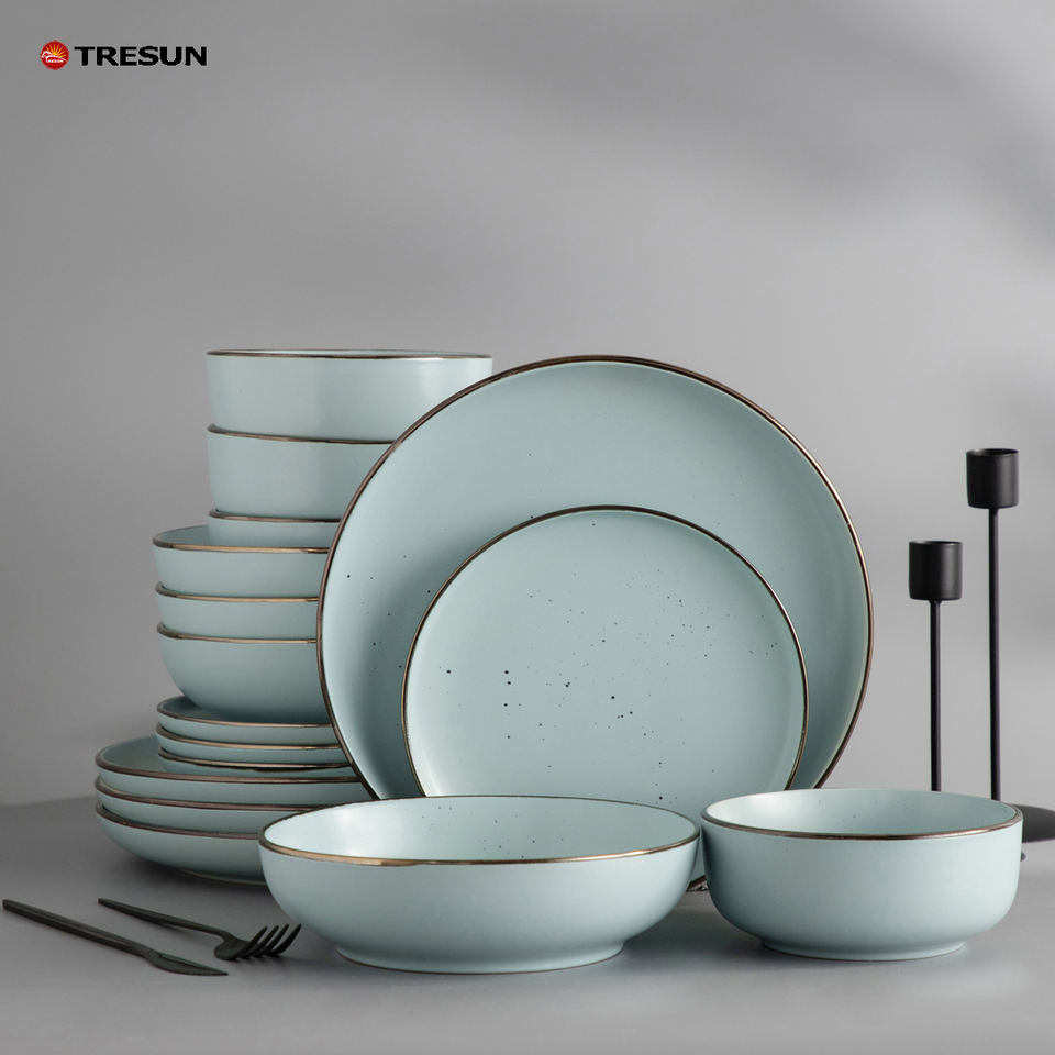 Usine de céramique de luxe 16 pièces fournir directement Restaurant Pind restauration grès vaisselle en céramique ensemble de vaisselle