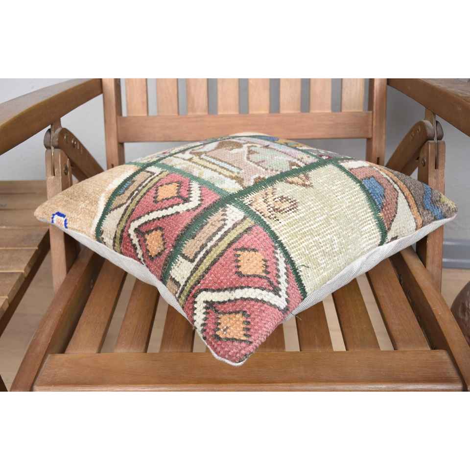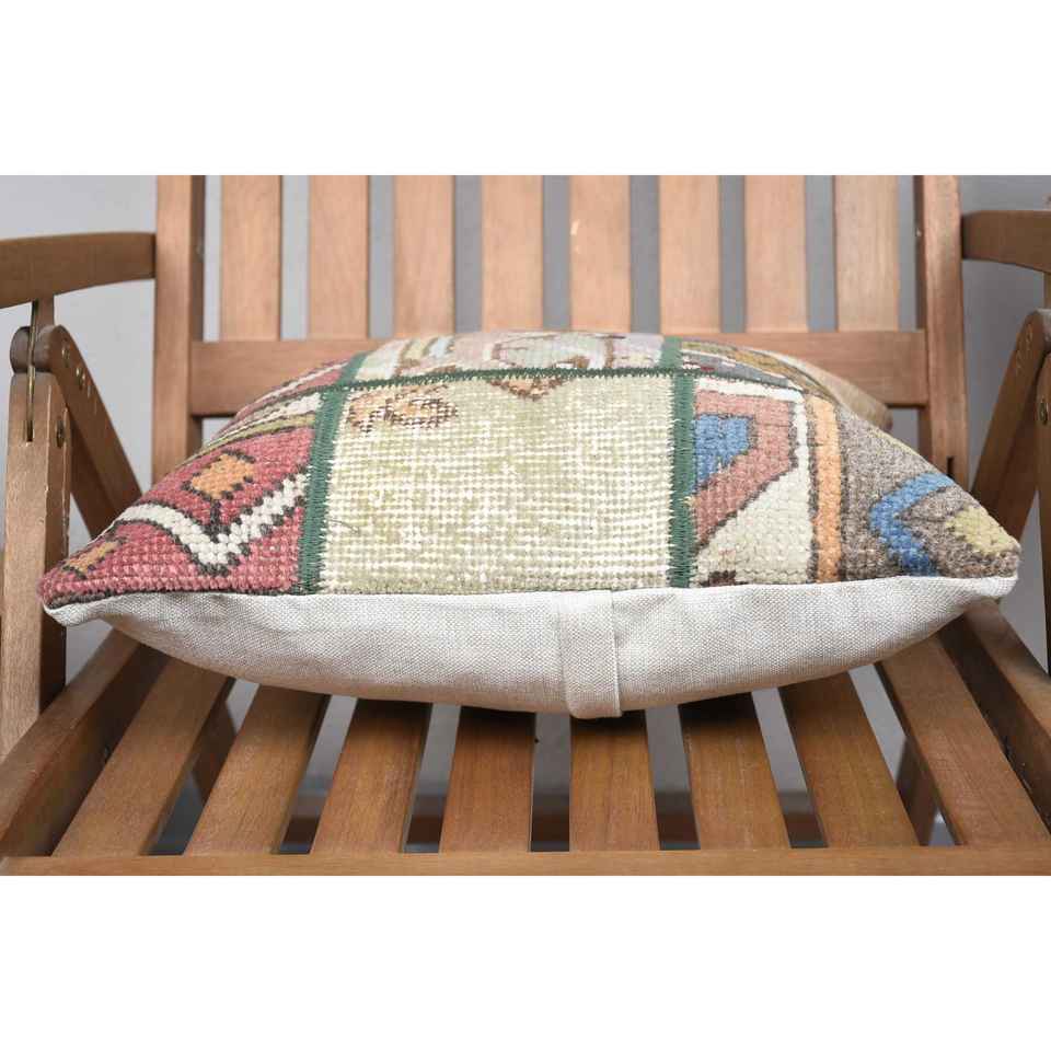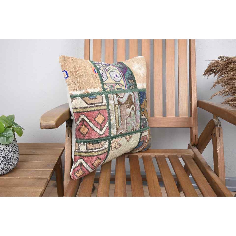 Luxe 16x16 Beige Kilim Patchwork Laine Oreiller Tissé Vintage Moelleux Motifs Portable pour Literie Design Rustique pour Noël