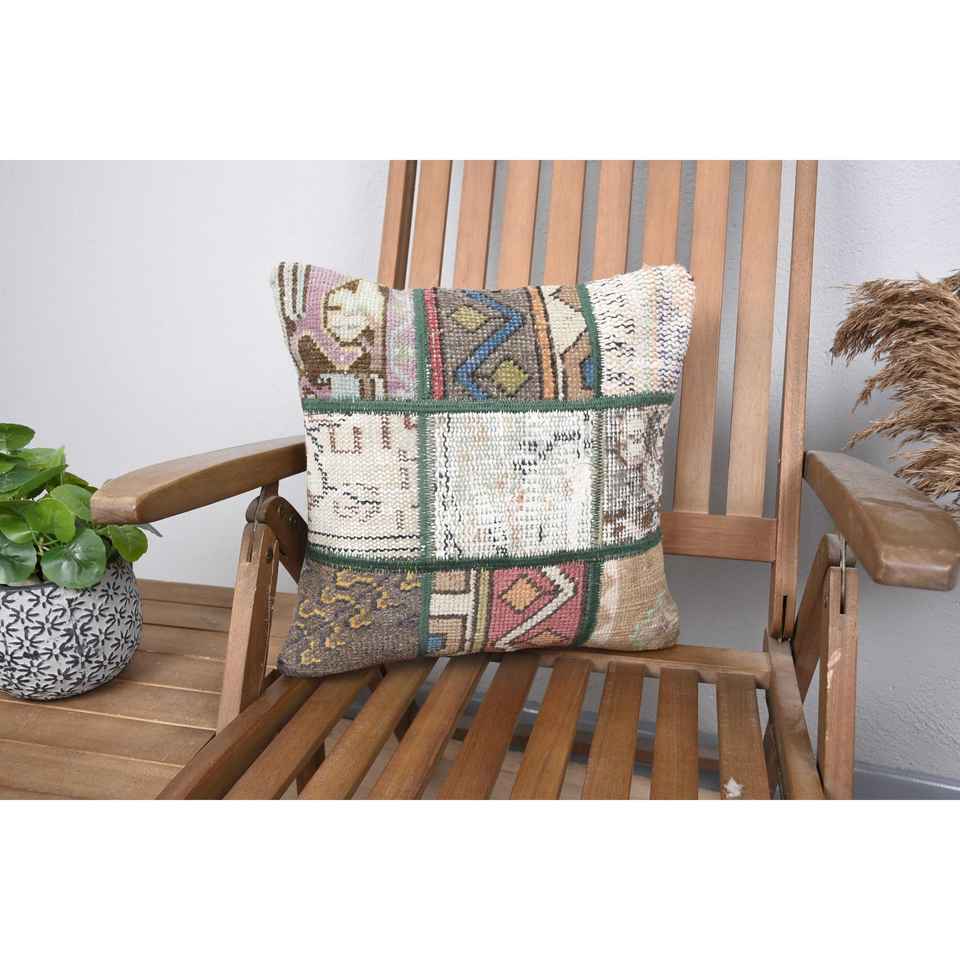 Luxe 16x16 pouces Beige Kilim Patchwork laine oreiller Vintage moelleux tissé Design pour canapé literie sol Portable rustique jeter