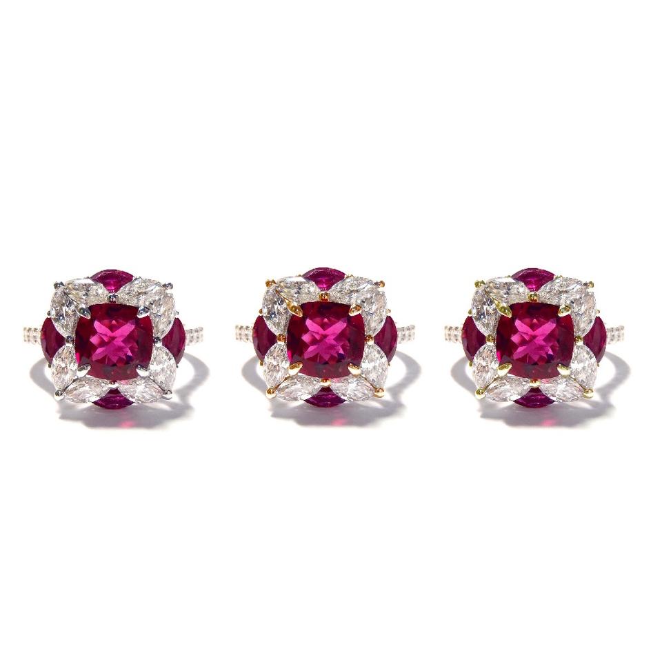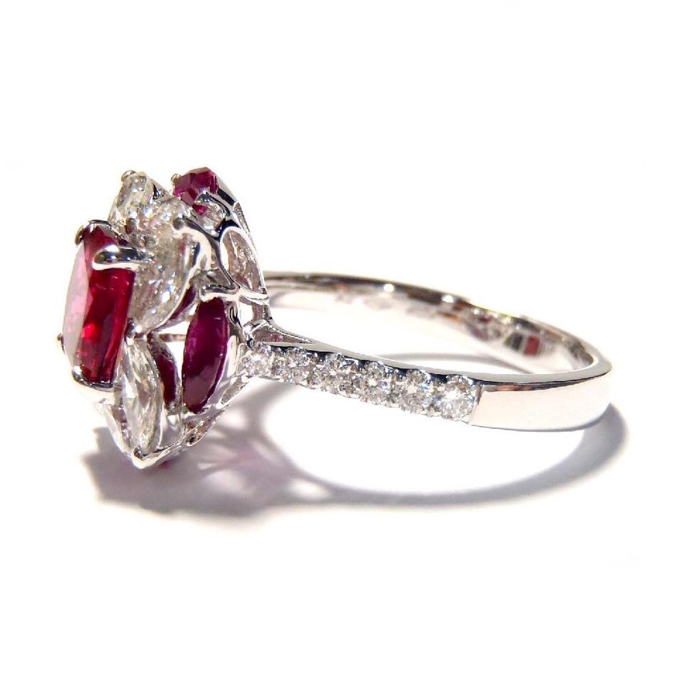 Bagues de mariage de luxe en or blanc massif 18 carats avec diamants et rubis véritables, motif floral, pour femme, pour les fêtes