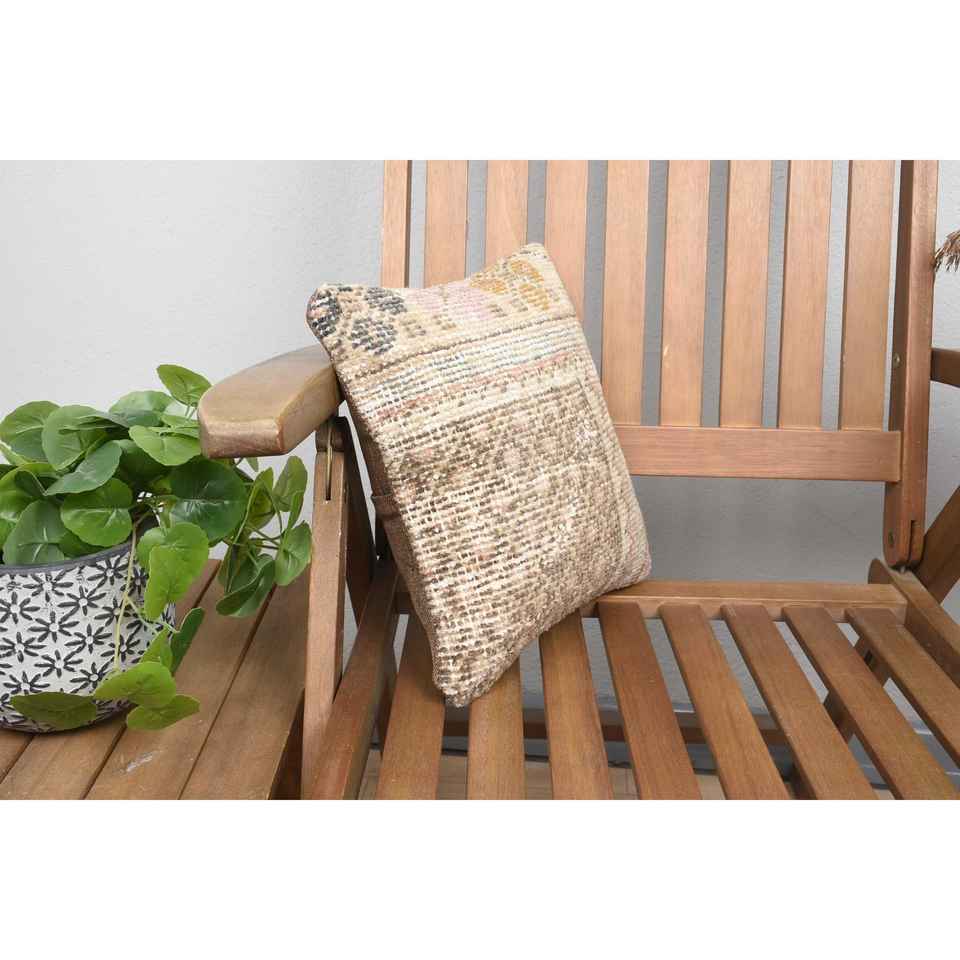 Luxe 18x18 Beige Vintage Kilim Patchwork Laine Traversin Oreiller 12x12 Pouces Antidérapant Écologique Amovible Lavable Coussin