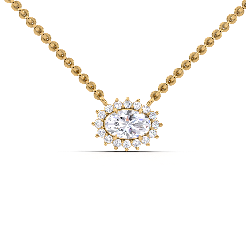 Luxury 1ct Oval Cut Lab Diamond Halo Pendant 18K Yellow White And Rose Gold Necklace for Women Wedding Jewelry