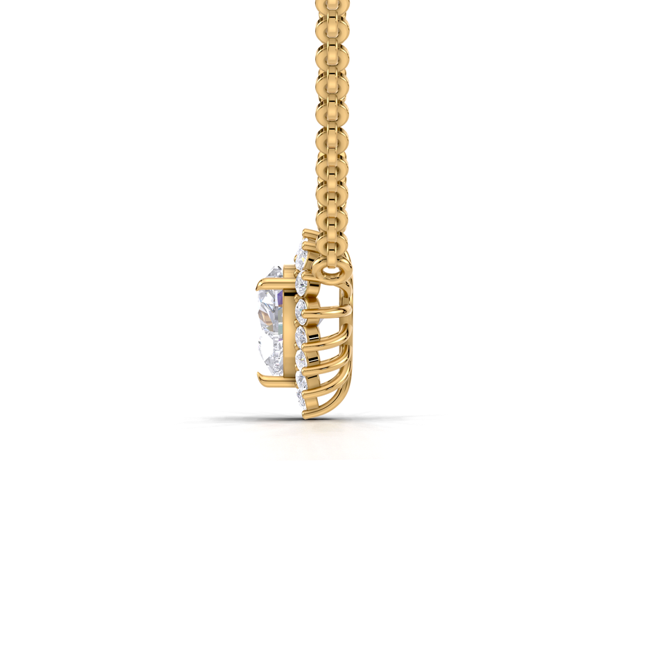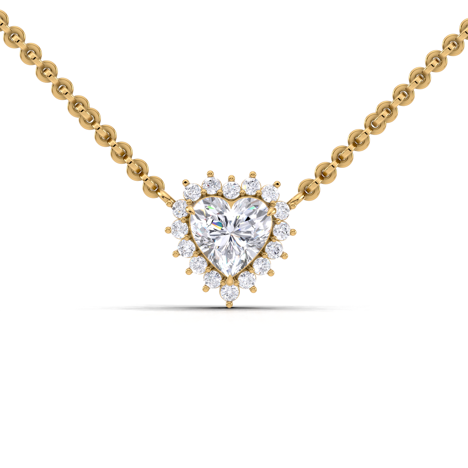 Pendentif de luxe en diamant de laboratoire taille cœur 1 carat avec halo et dos en forme de soleil | Collier en or jaune, blanc et rose 18 carats
