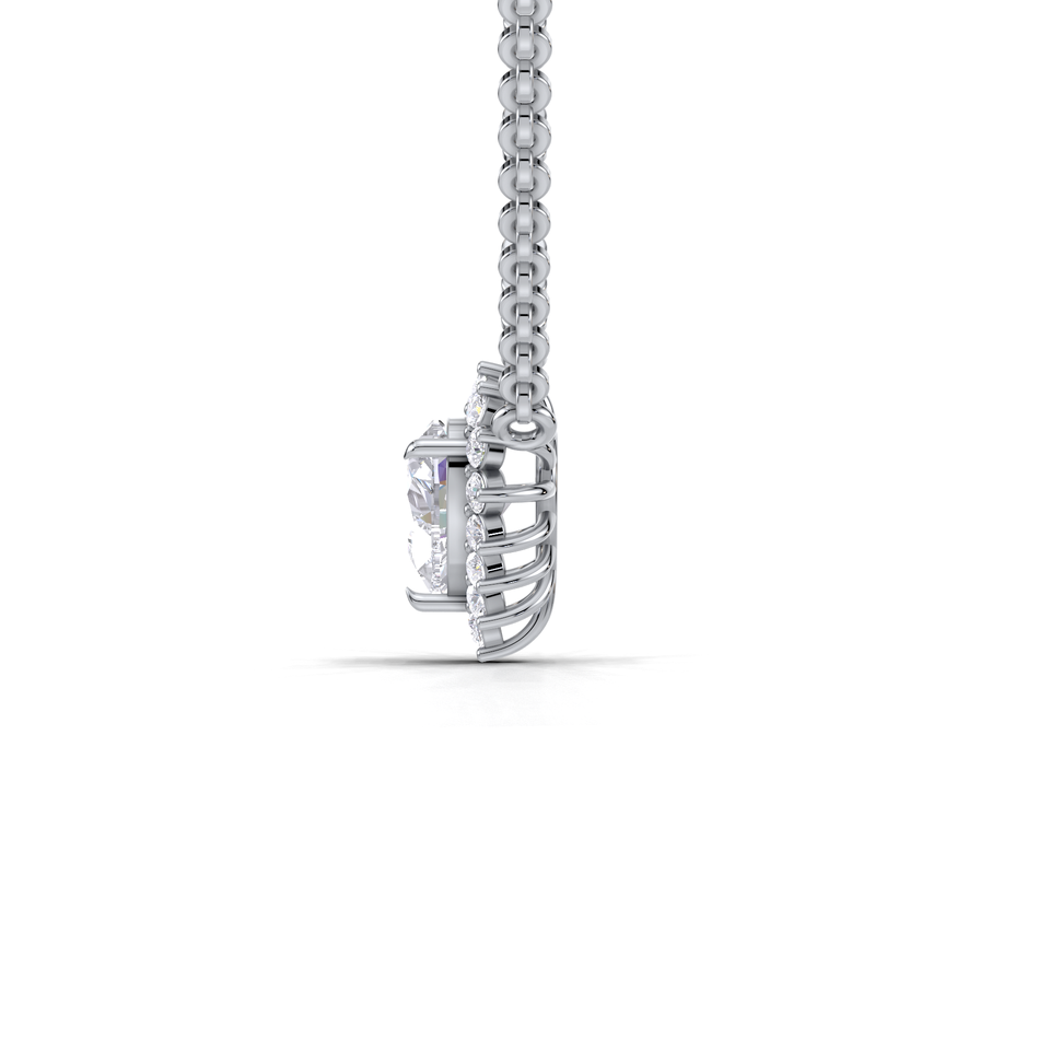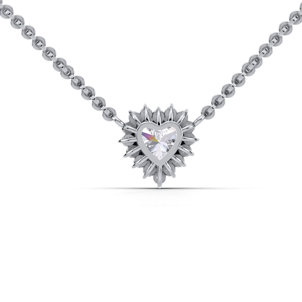 Pendentif de luxe en diamant de laboratoire taille cœur 1 carat avec halo et dos en forme de soleil | Collier en argent sterling 925 fin et solide