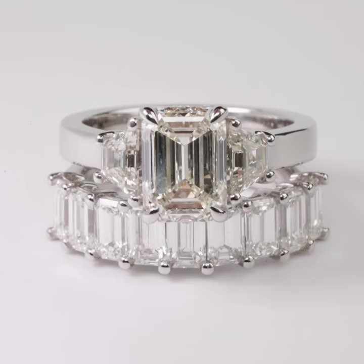 Ensemble de bagues de mariée de luxe avec diamant de laboratoire taille émeraude 2,00 carats, certifié IGI, bague de fiançailles et alliance en or 10K 14K 18K, vente en gros