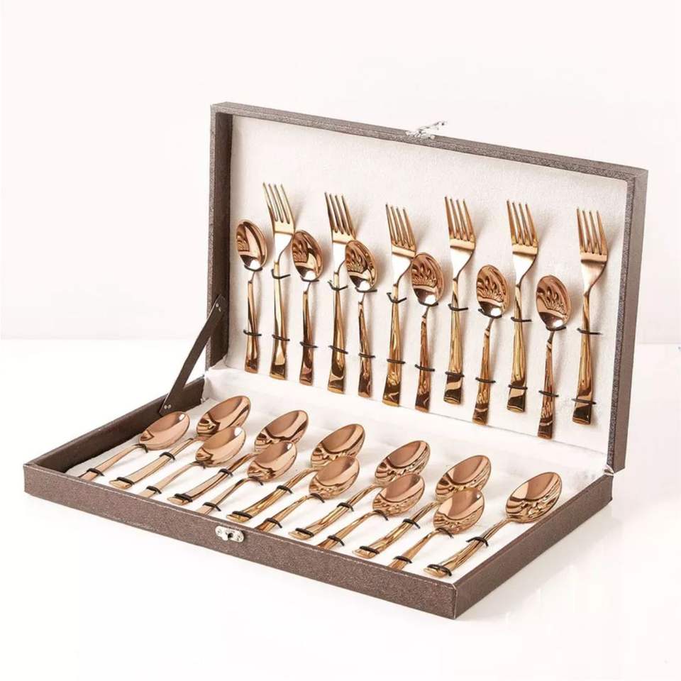 Luxury 24Pcs Gold Flatware Set Stainless Steel Mirror Polished Cutlery Set with Gift Case Premium Dinnerware Service for Hotel