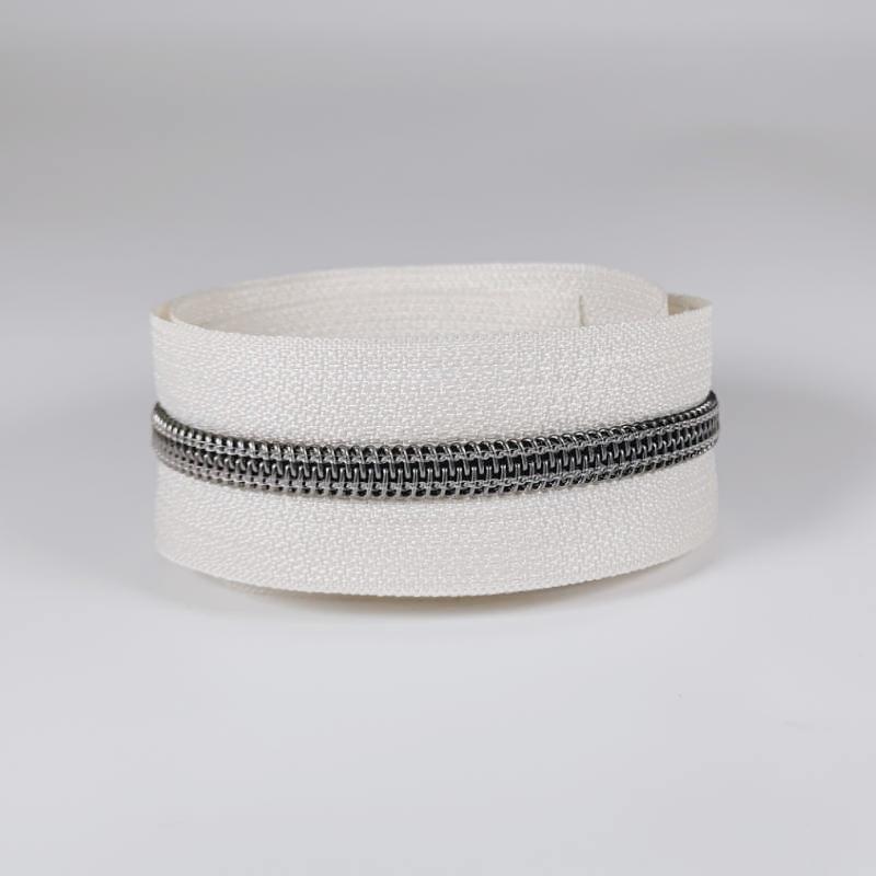 Fermeture éclair à glissière ouverte en nylon de luxe avec dents en PET, rouleau de 200 m, écologique, blanc, accessoires pour sacs, certifié CTI/GRS/REACH/SVHS