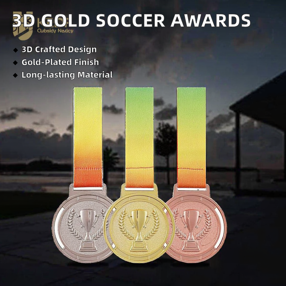 Ensemble de trophées de football en or 3D de luxe | Médailles personnalisées de forme ronde pour cérémonie de remise de prix | Ensemble de prix sportifs en gros