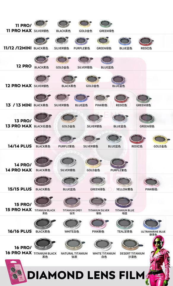 Anneau d'objectif de caméra de diamant en métal 3D de luxe protecteur de caméra en verre trempé pour iphone 17 16 15 protecteur d'objectif de caméra pour ISansung