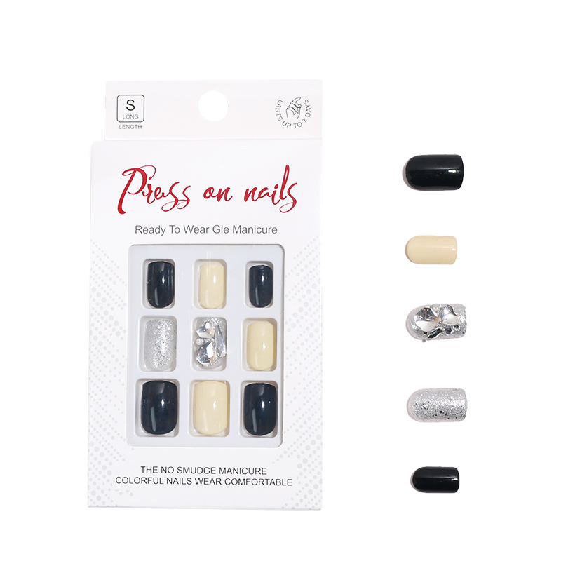 Luxe 3d Bling Strass Presse sur Ongles Haute Qualité À La Main Court Carré Faux Ongles pour Femmes Noir Beige Conceptions Faux Ongles