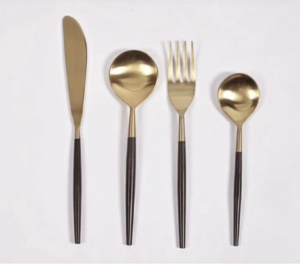 Vintage 4PCS Gold Flatware Set for Wedding With Resin Handle Personalized For Home Decor Tableware Cutlery Set At Best Price