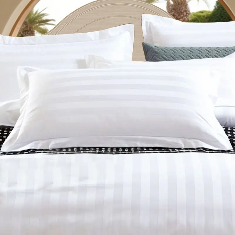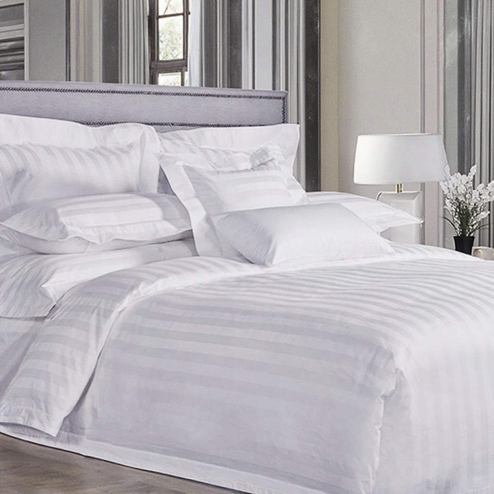 Ensemble de housse de couette de luxe 4 pièces 100% polyester certifié OEKO-TEX Tissé Design rayé uni en relief Utilisation hôtelière 1800TC Nombre de fils