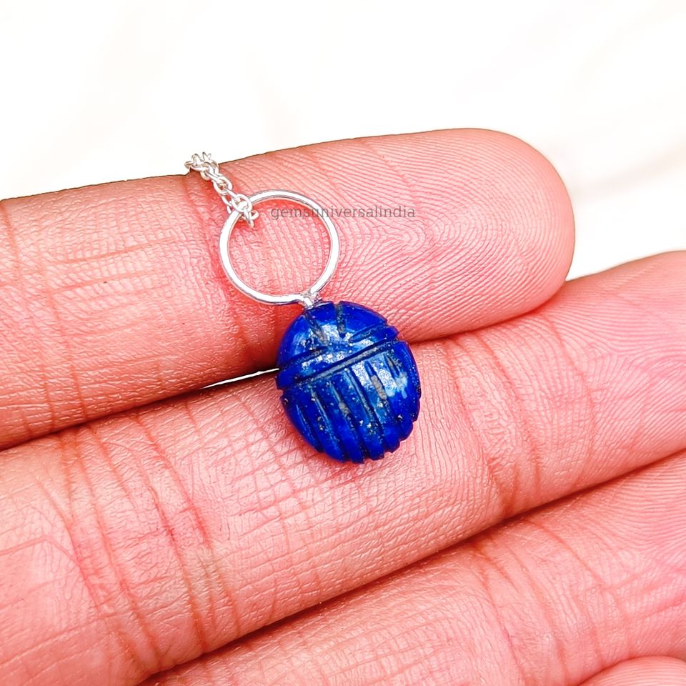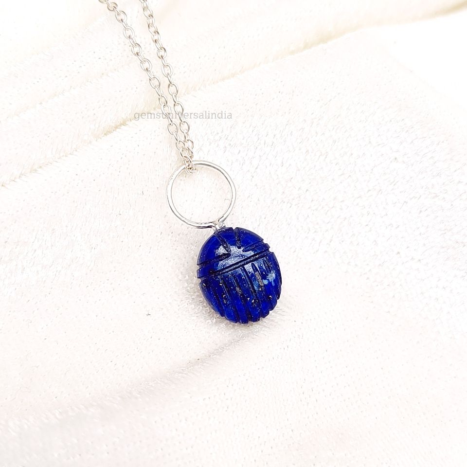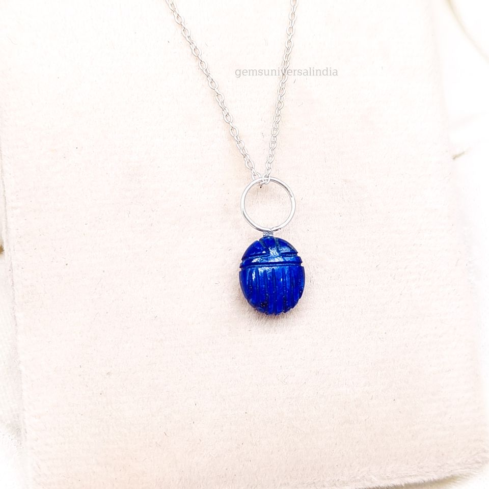 Product name:Lapis Lazuli Scarab Carved 925 Silver Necklace