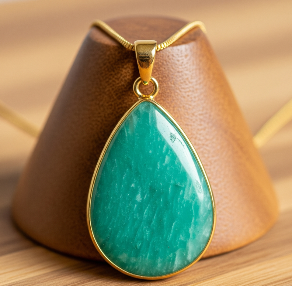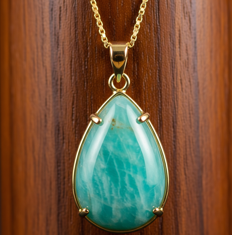 Luxury 925 Sterling Silver Dainty Chain with Bohemian Amazonite Drop Shape Pendant Healing Crystal Fashion Pendants for Gifts