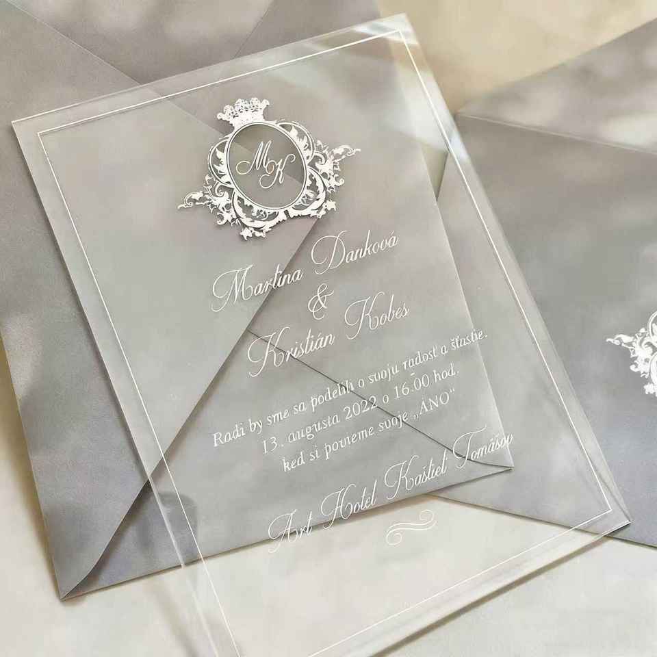 Cartes d'invitation de mariage de luxe en acrylique et enveloppes en velours – Modernes, écologiques et créatives pour la fête des Mères et les mariages