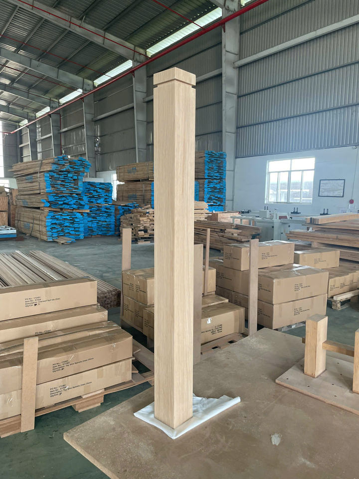 Poteau d'escalier réglable de luxe, plusieurs options de bois, peuplier massif, rainure simple, encoche, escalier écologique, durable, marque EFS