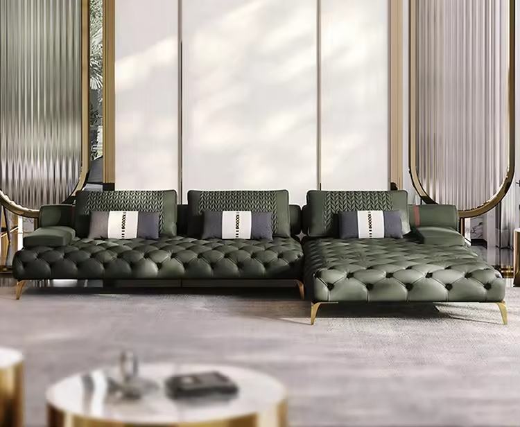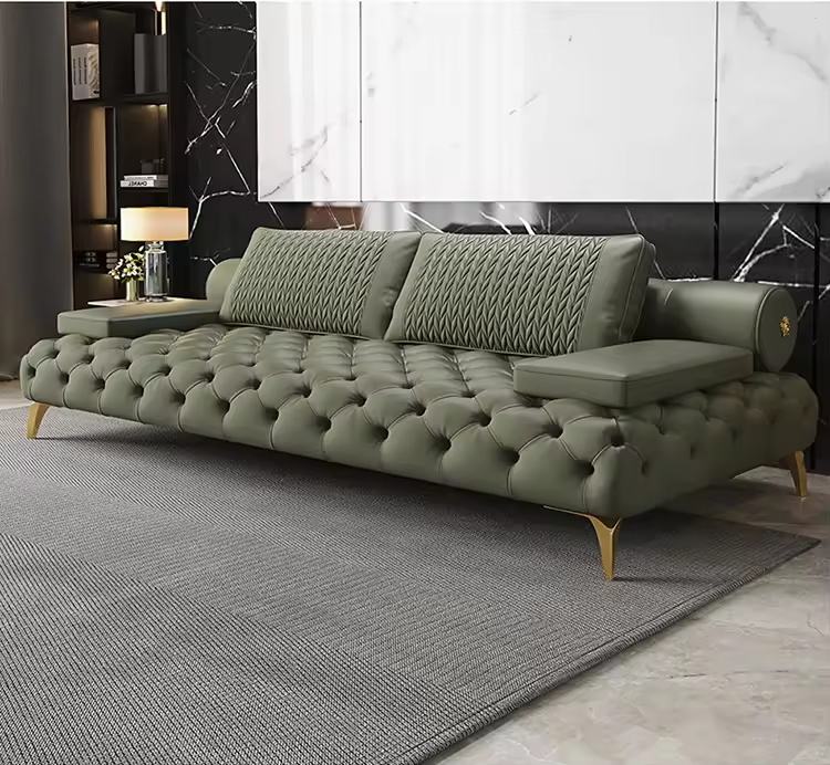 Luxe Style Américain En Cuir Bouton Tufté Réception Canapé Élégant Salon Meubles Ensemble Hôtels 5 Étoiles Salon Tissu Hall