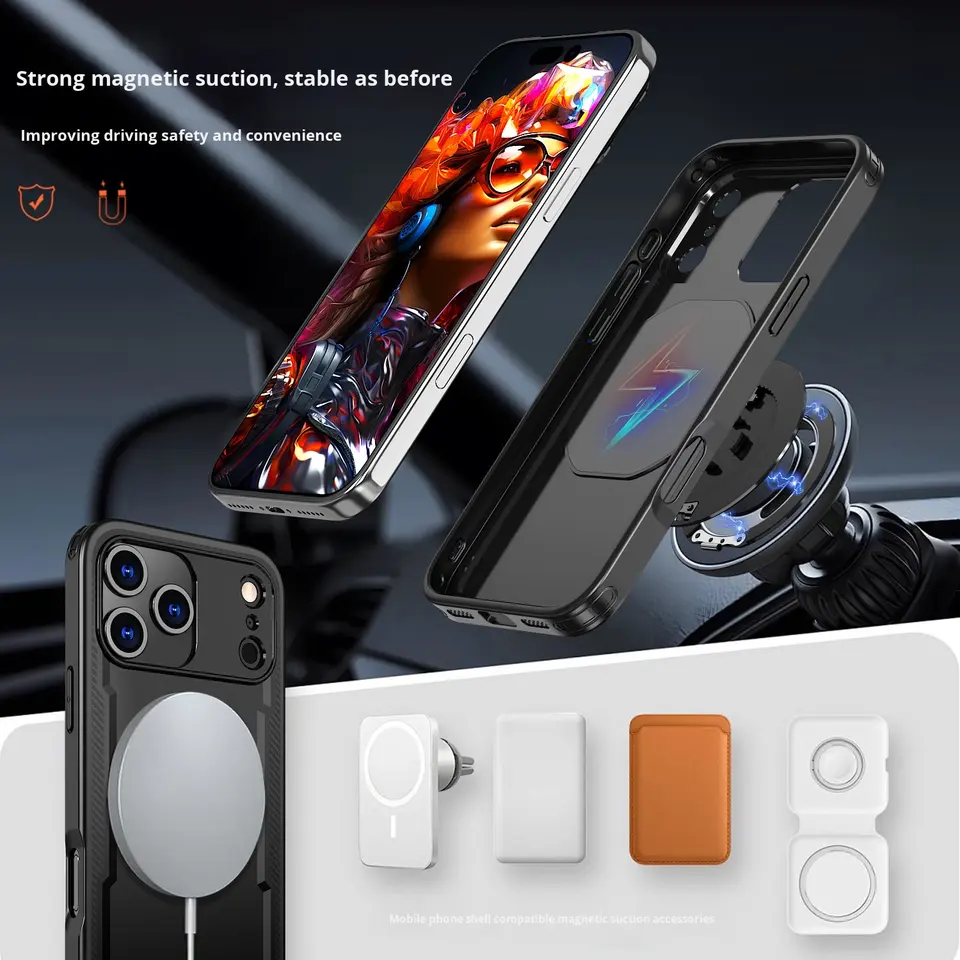 Étui anti-chute de luxe pour iPhone 17Pro avec support magnétique rotatif d'amortissement de la poignée du téléphone pour Amazon Exclusive