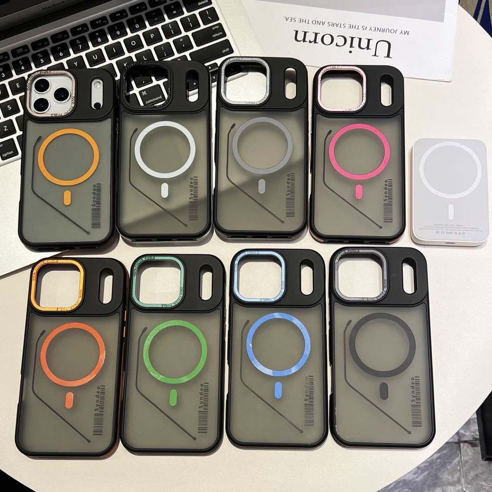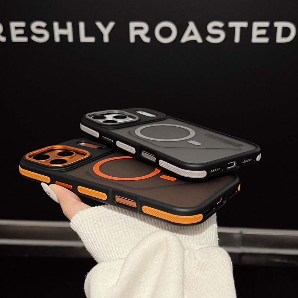 Coque de téléphone magnétique translucide givrée antidérapante de luxe pour 16/11 Pro Max/Plus avec couleurs patchwork et grip