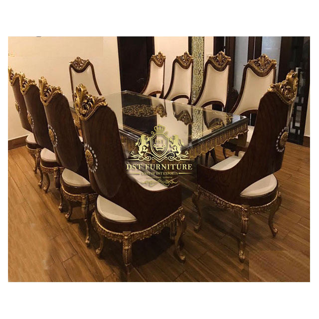 Luxury Antique Black Dining Table Set in 11 Pieces