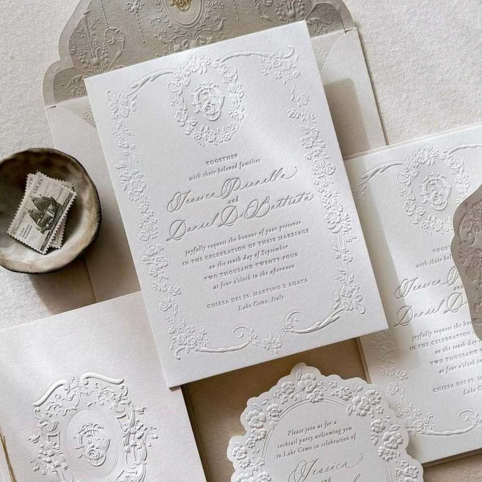 Invitations de mariage de luxe en papier et carton avec impression typographique, monogrammes personnalisés, ensembles en gros pour les organisateurs de mariages