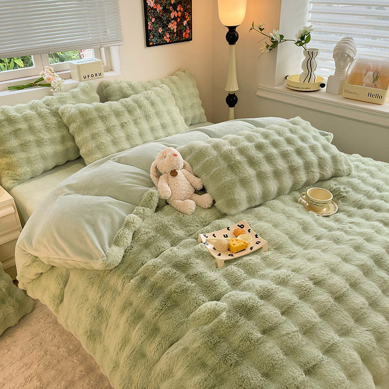 Drap de lit en fourrure de lapin artificielle de luxe, housse de couette à bulles imprimée, ensemble de literie, couleurs magnifiques, doux et confortable, lit double