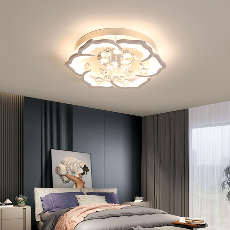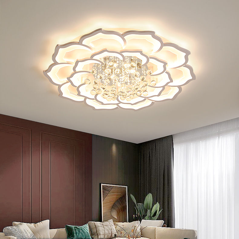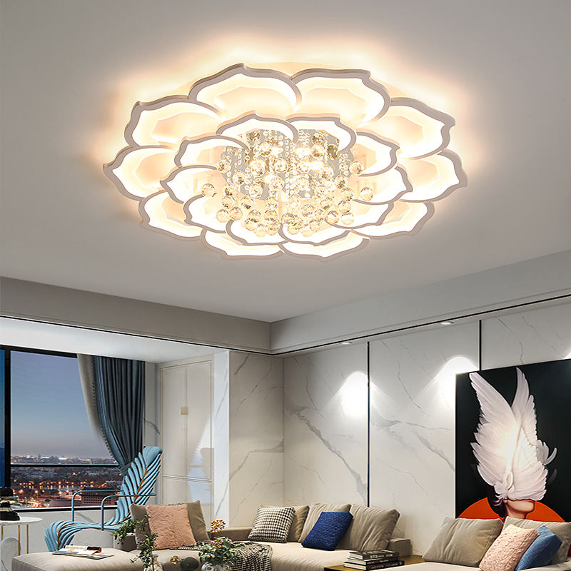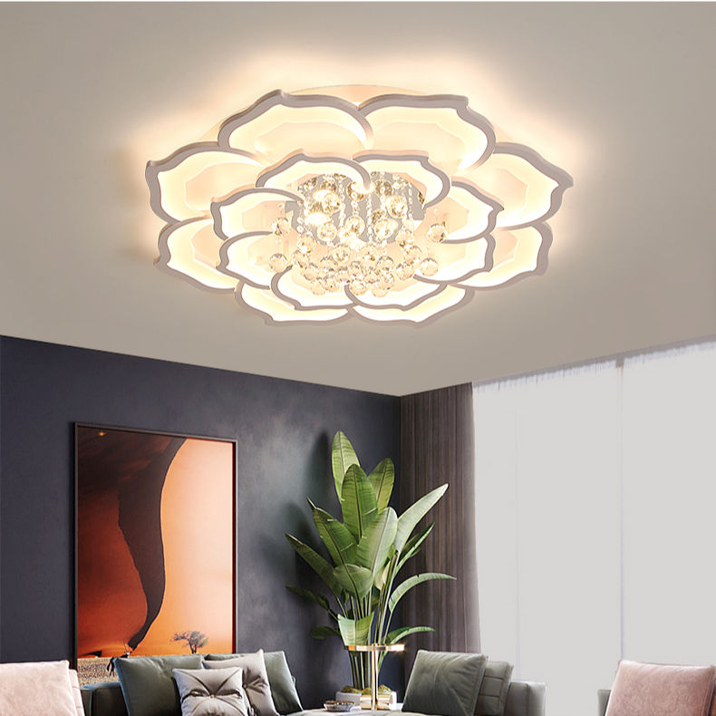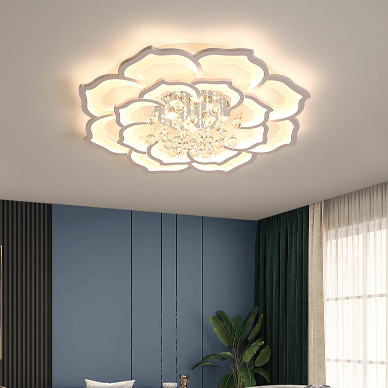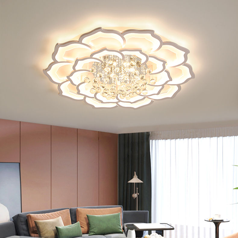 Luxe Atmosphérique Maison Salon Plafonnier Cristal Lotus Chambre Étude LED Plafonnier Minimaliste Fer Acrylique Blanc 90
