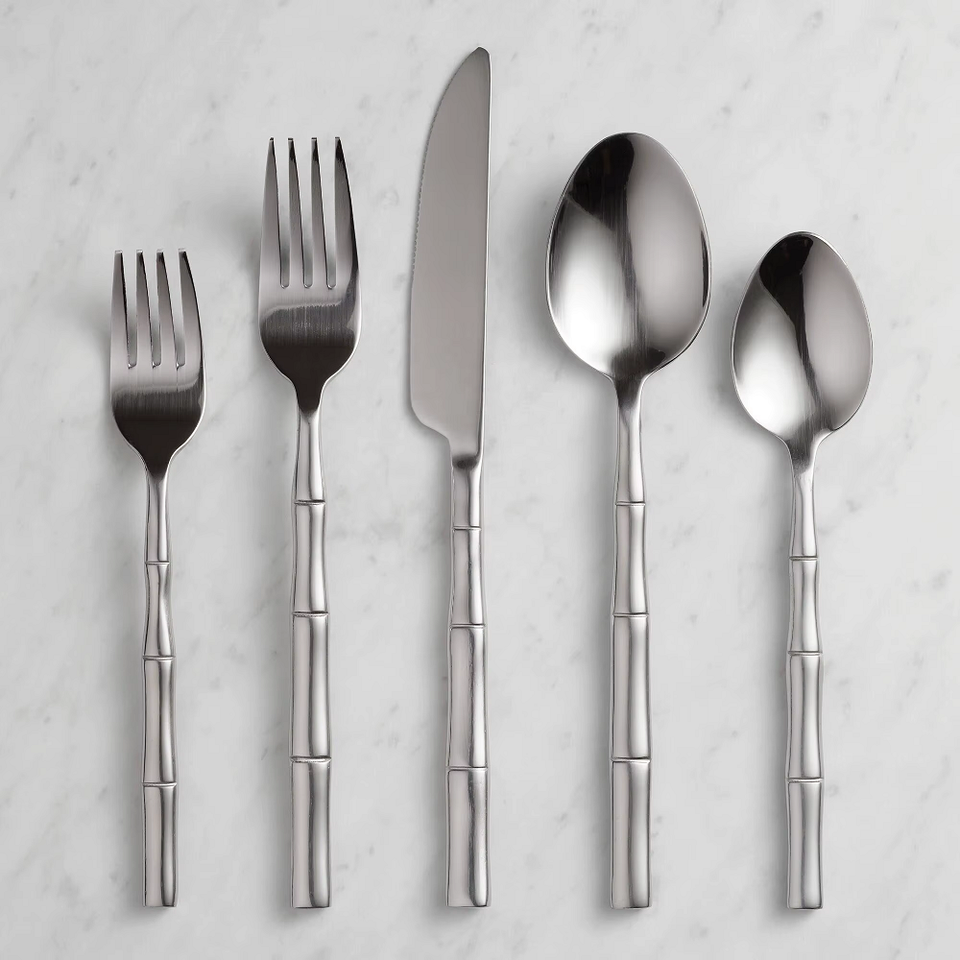 Ensemble de couverts en argent brillant avec poignée en forme de bambou