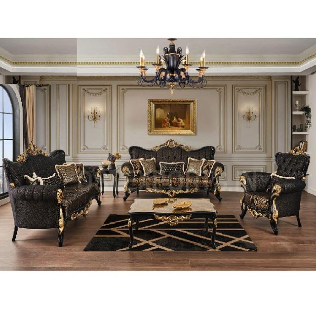 Luxury Baroque Black Gold Living Room Furniture