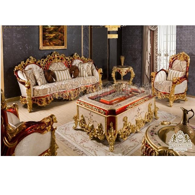 Luxury Baroque Style Leaf Carved Sofa Set For VillaProduct name