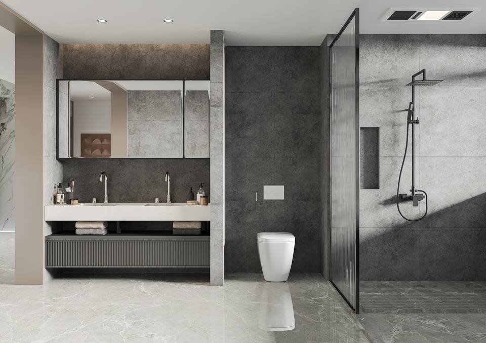 Meuble-lavabo de salle de bain de luxe avec capteur intelligent, miroir LED et armoire de rangement sur pied étanche
