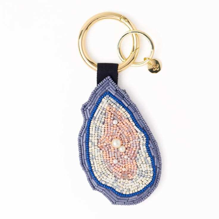 Porte-clés de luxe brodé de perles, élégant, style ethnique, avec perles de rocaille et motif brodé