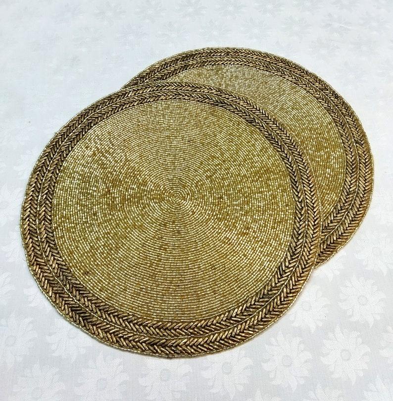 Sets de table brodés à la main, écologiques et luxueux, pour la décoration de la maison et des mariages, design personnalisé, perles de rocaille, motif floral
