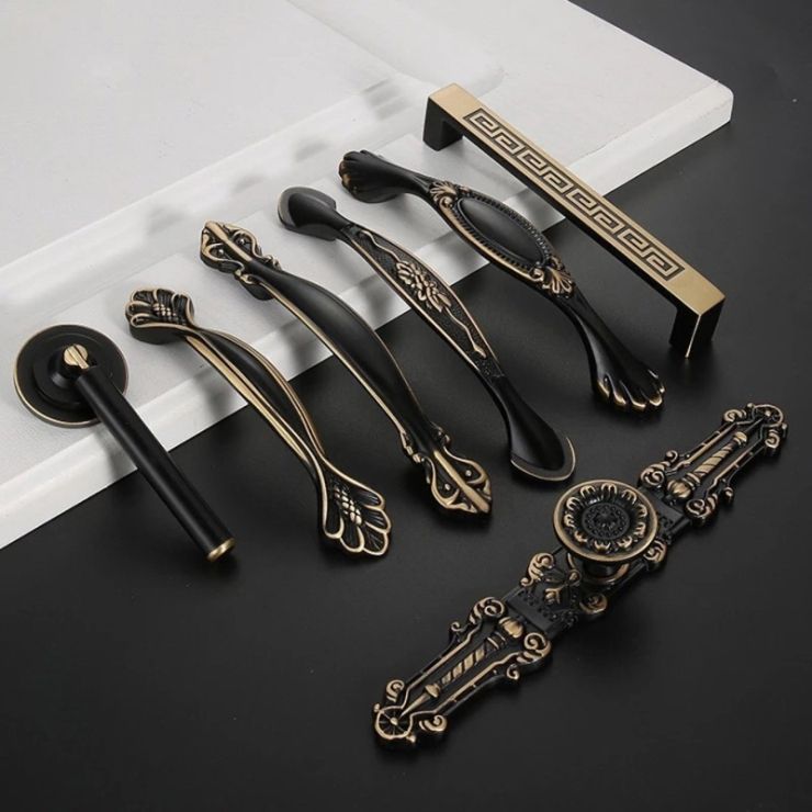 Poignée de porte de luxe, élégante et longue, noire et dorée, pour armoire de cuisine, meuble de rangement, provenant d'une usine du Vietnam