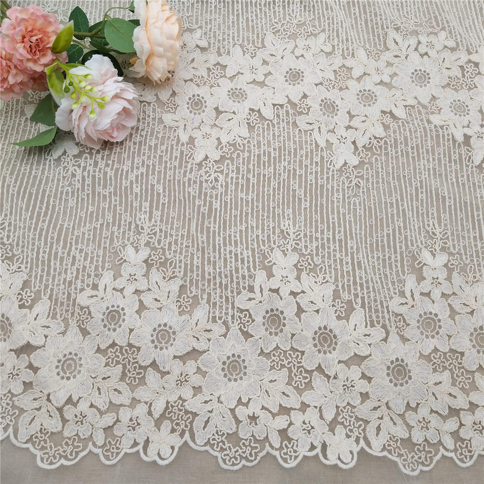 Dentelle de haute qualité brodée par tissu de maille Beige de luxe pour des vêtements de décoration de chiffons nouveau Style