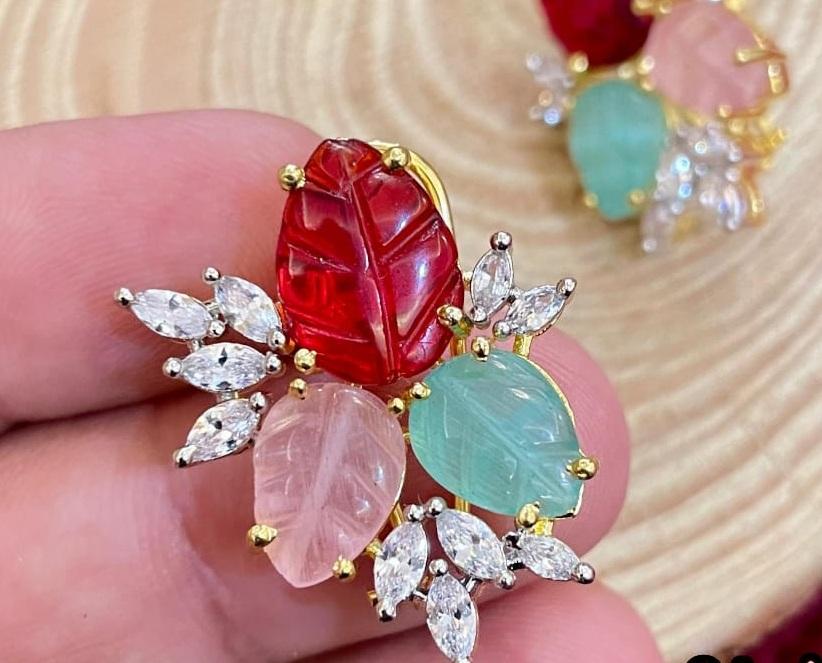 Boucles d'oreilles en plaqué or aspect pierre de qualité supérieure de luxe Vêtements traditionnels pour la fête, le mariage Collection de vêtements pour femmes