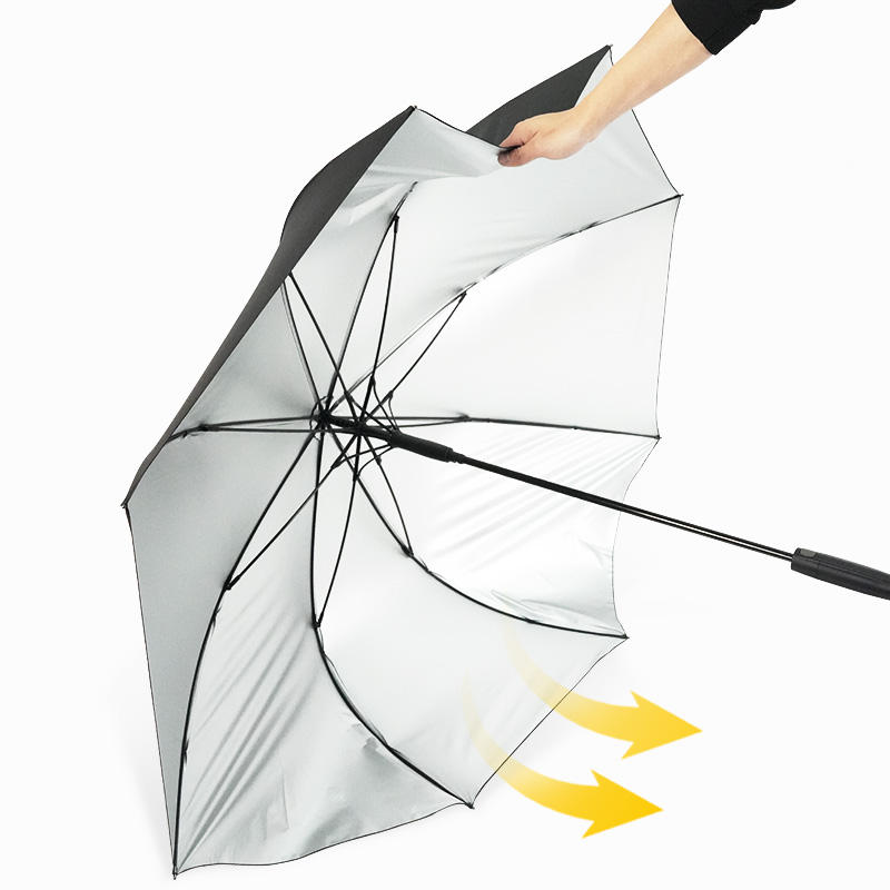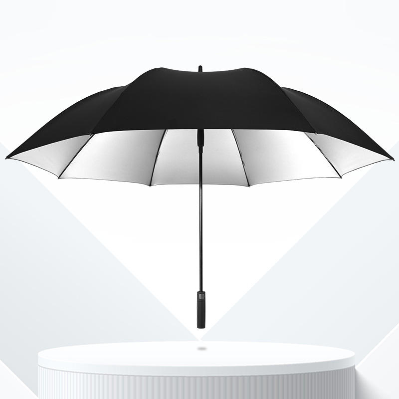 Parapluie de golf de luxe grand format en pongee, avec revêtement UV argenté, imperméable, à armature en fibre de verre, coupe-vent et ouverture automatique