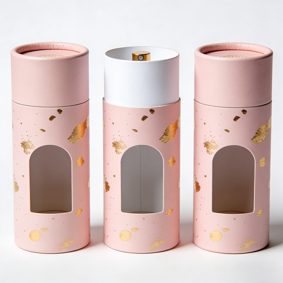 Boîte d'emballage en tube de papier pour parfum, en carton biodégradable de luxe, avec laminage mat, impression personnalisée, tube cylindrique avec logo