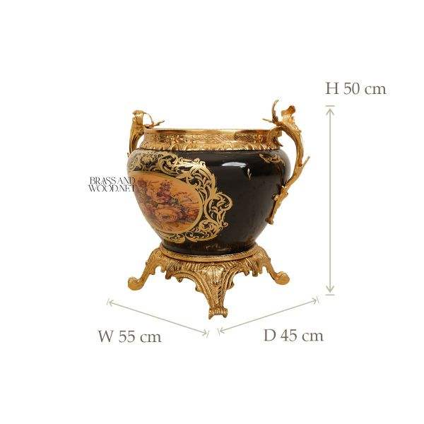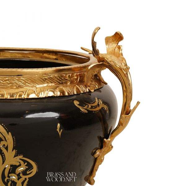 Luxury Black Ceramic Planter With Gold Plated Brass Decorative Flower Pot