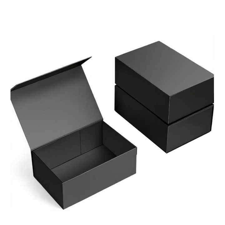Boîte cadeau pliante noire de luxe, grande taille, avec logo personnalisé et fermeture magnétique