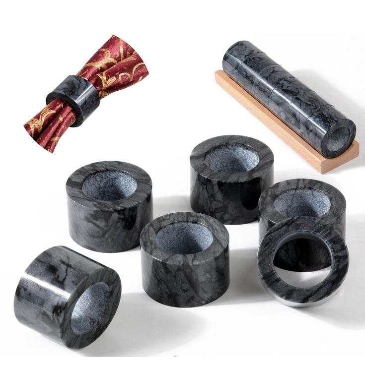 Lot de 6 ronds de serviette en marbre noir de luxe élégants porte-serviettes ronds décor de table en pierre naturelle pour les mariages fêtes à manger