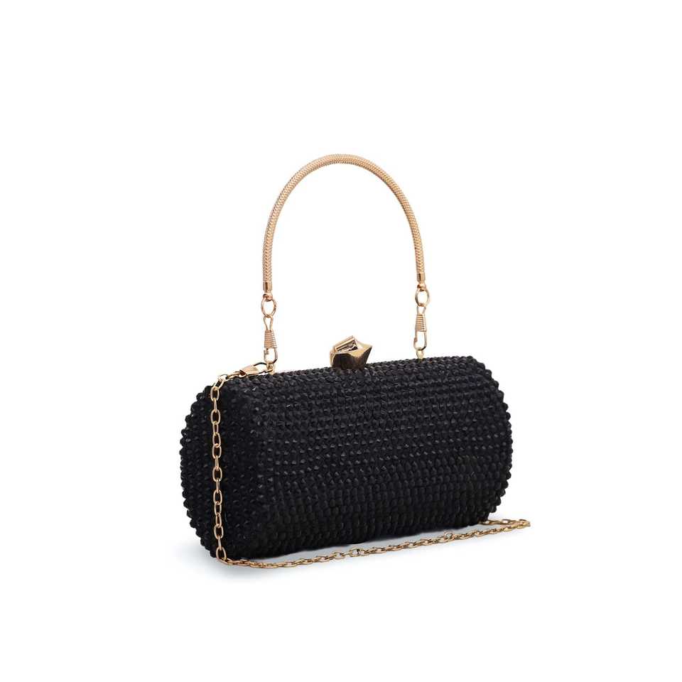 Luxury Black P23842 Clutch Purses Satin Lined Evening Party Bag with Flap and Chain Decoration Crystal and Silk Material