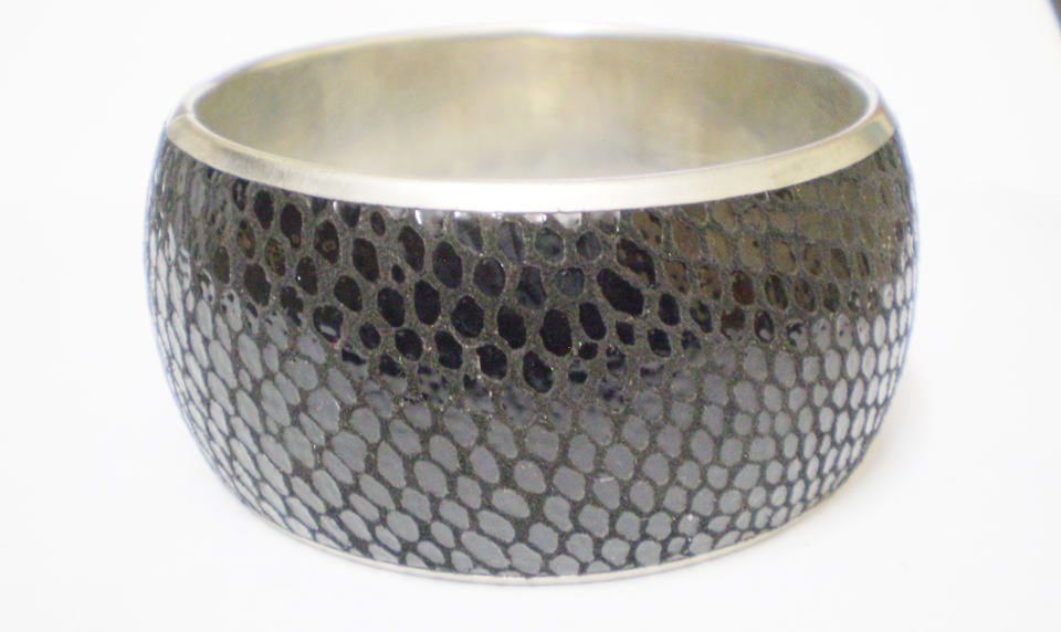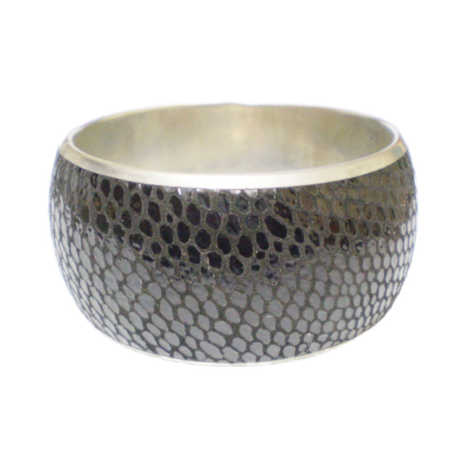Bracelet en cuivre à motif de peau de serpent noir de luxe pour femmes, bracelet large texturé à imprimé animal tendance, finition argentée élégante