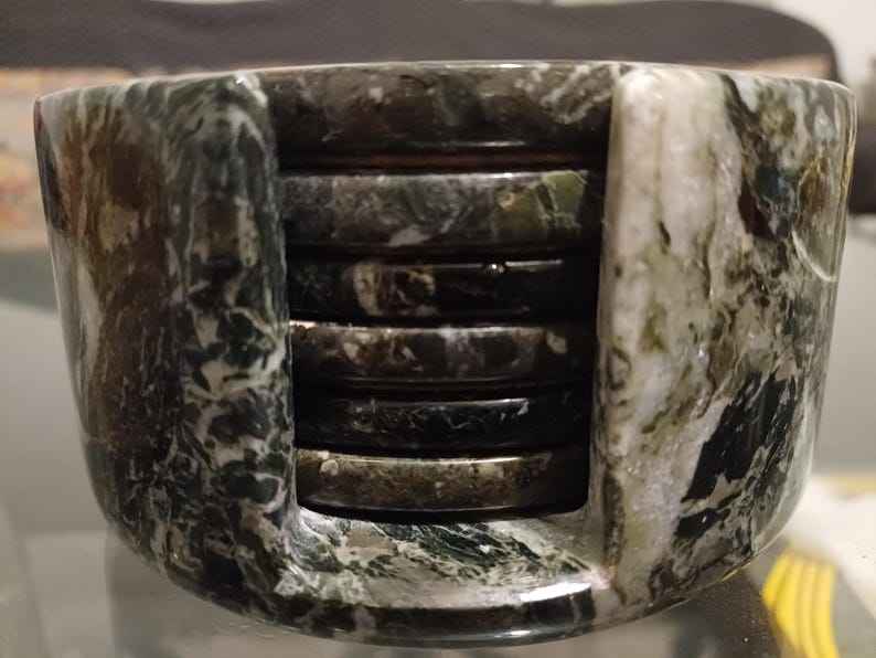 Sous-verres à thé en marbre zèbre noir de luxe ensemble rond de 7 tapis de tasse à café en pierre naturelle vaisselle élégante faite à la main